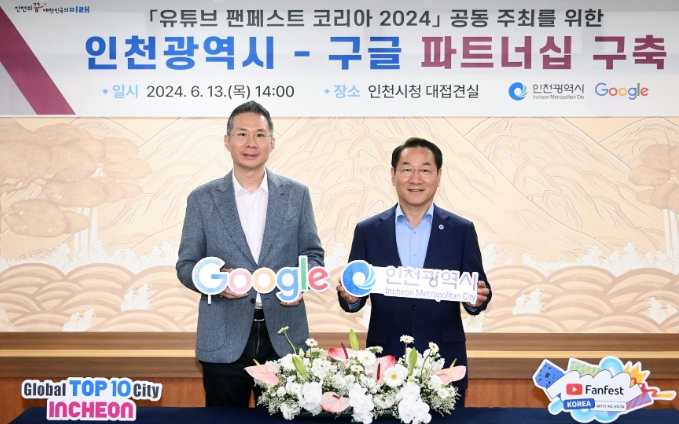 [뉴스서울] 인천광역시와 구글은 6월 13일 시청 대접견실에서 글로벌 이벤트'유튜브 팬페스트 코리아 2024'행사의 공동 마케팅 협력을 위한 파트너십을 구축했다.