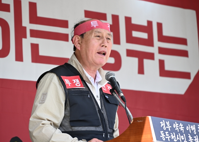 [뉴스서울] 동두천시 지역발전 범시민대책위원회는 18일 14시 30분 미2사단 캠프 케이시 앞에서 동두천 지원 대책 이행을 촉구하는 총궐기대회를 개최했다.