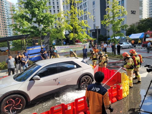 특히 전기차의 특성을 고려한 상방방사관창과 질식소화덮개, 이동식 수조 등 전기차 화재 전용 장비를 활용해 자동차 배터리 화재를 효과적으로 진압하는 법을 시연하는 등 전기차 화재 대응체계를 강화하고자 했다.
