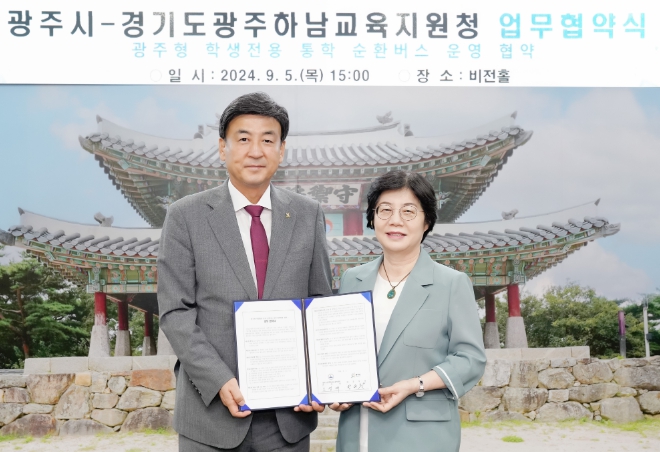 [뉴스서울] 광주시와 광주하남교육지원청은 5일 시청 비전홀에서 ‘광주형 학생 통학버스 운영을 위한 업무협약’을 체결했다.