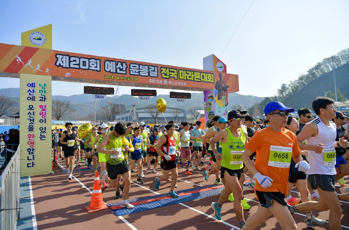 [뉴스서울] 예산군체육회와 중도일보가 공동으로 개최한 제20회 예산 윤봉길 전국마라톤대회가 7일 예산군 종합운동장과 벚꽃로 일원에서 성황리에 막을 내렸다.