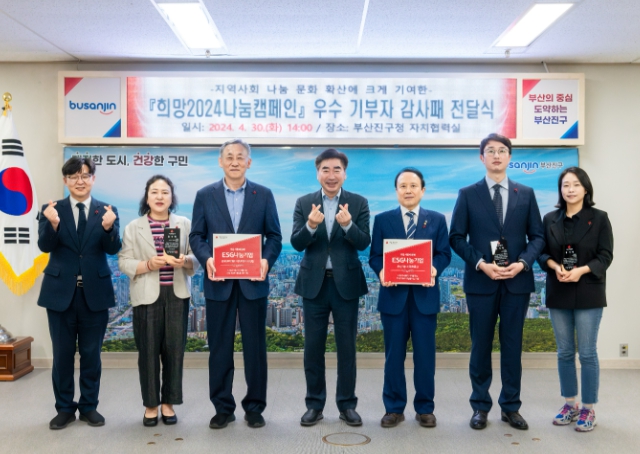 [뉴스서울] 부산 부산진구는 4월 30일 부산사회복지공동모금회와 함께 ‘희망2024나눔캠페인 우수 기부자 감사패 전달식’을 개최했다고 전했다.