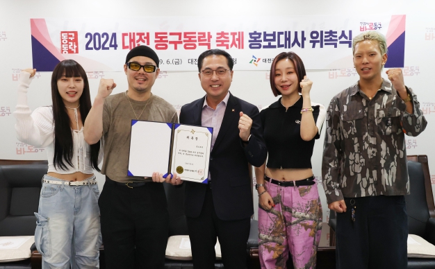 [뉴스서울] 대전 동구는 6일 대표축제인 ‘2024 대전 동구동락 축제’의 개최를 한 달여 앞두고, 인기그룹 ‘군조크루’를 홍보대사로 위촉했다.