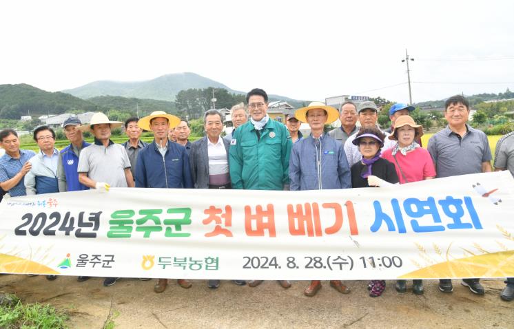 [뉴스서울] 울산시 울주군이 28일 두서면 신전 들녘에서 이순걸 군수와 지역 농업인 등이 참석한 가운데 ‘2024년 첫 벼 베기 행사’를 실시했다.