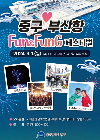 올해 14회째를 맞이하는 중구민의 날을 경축하기 위한 ‘중구 부산항 펀&펑 페스티벌’ 행사는 부산항 1부두 2만 4천㎡ 부지에서 각종 참여와 체험행사, 전시, 먹거리, 신나는 축제와 공연 등이 다채롭게 펼쳐질 뿐 아니라 제9회 중구 복지박람회를 통합 개최하여 그 의미와 규모를 더했으며, 북항시대를 맞이한 중구 미래발전상 공유 등 1,000여대가 군집한 불꽃 드론쇼가 피날레로 마련되어 수변 항만에서 펼쳐질 환상적이고 강렬한 추억을 선사할 계획이다.