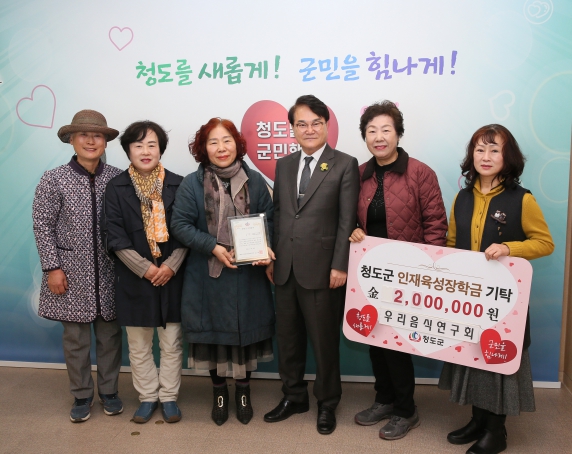 김하수 청도군수는 “우리음식연구회원들의 소중한 마음을 모아 기탁한 인재육성장학금을 지역인재육성에 쏟을 수 있도록 더욱 힘쓰겠다.“고 말했다.