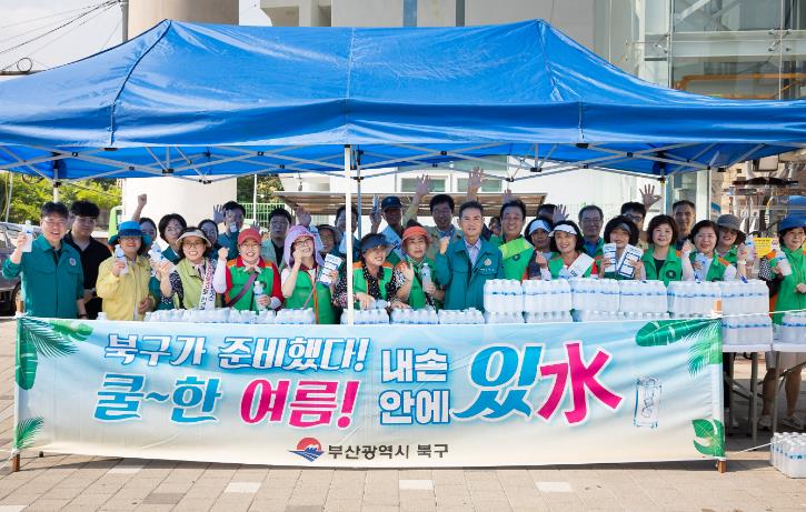 이번 행사는 북구에서 유동인구가 밀집한 구포시장 공중화장실 앞, 덕천동 뉴코아아울렛 앞, 화명동 롯데마트, 대천천 계곡 일원 총 네 곳에서 진행되었고, 북구 자율방재단원 62명, 공무원 등 총 100여명이 참여하여 폭염에 지친 구민들에게 캠페인용 생수·에코백 등을 전달하며, 폭염 극복을 응원했다.