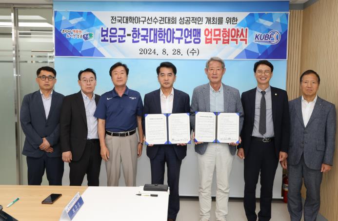 이번 협약으로 2025년부터 4년간 보은스포츠파크 일원에서 전국대학야구선수권대회가 개최될 예정이며, 보은군은 대회 운영 및 진행을 위한 시설 등을 지원하고 한국대학야구연맹은 참가팀, 경기 운영 방법 등 선수권대회 운영 전반에 관한 사항을 추진한다.