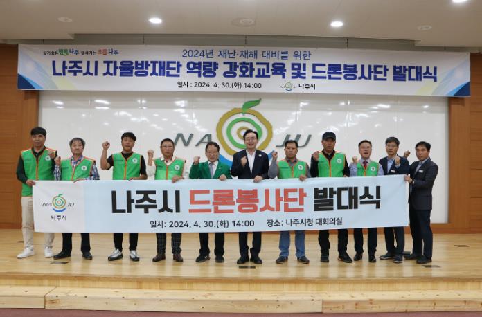 [뉴스서울] 전라남도 나주시는 지난 30일 자율방재단 100여 명이 참석한 가운데 ‘2024년 자율방재단 역량 강화 교육 및 드론 봉사단 발대식’을 개최했다고 1일 밝혔다.
