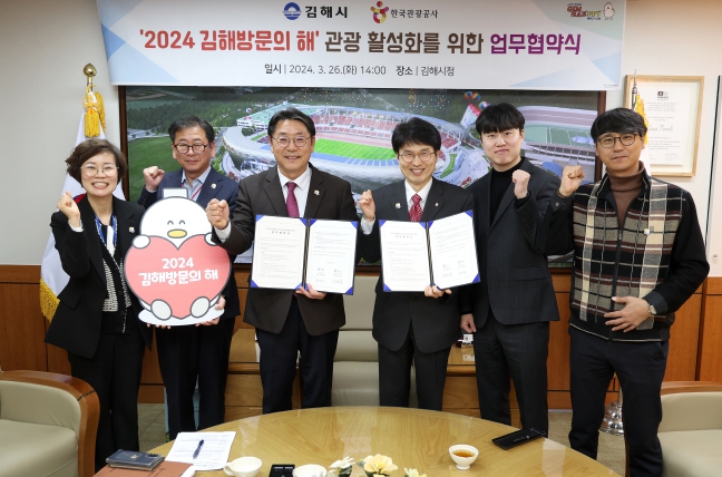 [뉴스서울] 김해시는 지난 26일 김해시청 시장실에서 한국관광공사 부산울산경남지사와 ‘2024 김해방문의 해’의 성공과 김해관광 활성화를 위한 공동마케팅 업무협약을 체결했다고 26일 밝혔다.