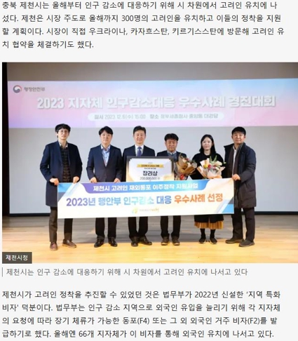 이에 앞서 지난 7월 3일 BBC NEWS 코리아에서는 “초저출생 한국에서 이미 시작된 미래”라는 타이틀로 보도자료를 작성 제천시의 고려인 동포 이주정착 지원사업이 함께 보도 됐다.