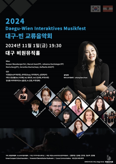 [뉴스서울] 유네스코 음악창의 도시 대구와 클래식 음악의 도시 오스트리아 빈을 연결하는 ‘2024 대구-빈 교류음악회’가 11월 1일 19:30 대구 비원뮤직홀에서 열린다.