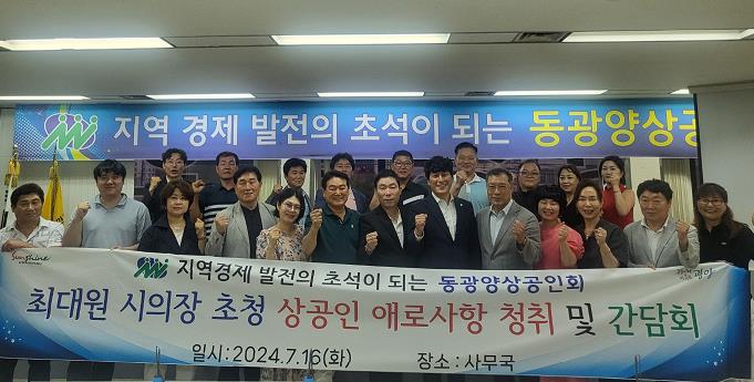 이날 간담회는 동광양상공인회의 요청으로 이루어졌으며, 지역 경제 활성화와 상공인들의 경영 환경 개선을 위한 다양한 의견이 제시됐다.