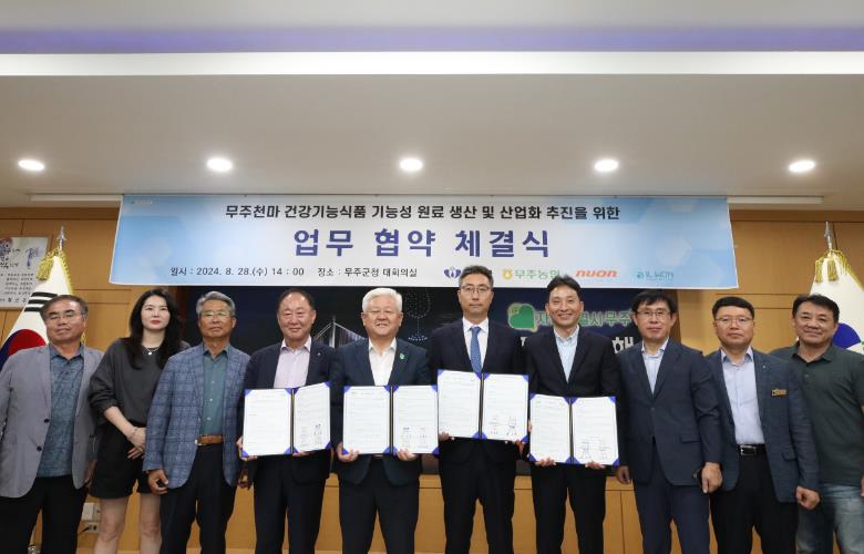 이번 협약은 무주천마의 사용 촉진과 식품의약품안전처로부터 건강기능식품 기능성 원료로 승인된 천마를 활용한 산업화를 추진한다는 취지에서 체결한 것으로,