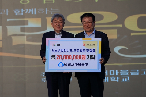 [뉴스서울] 익산시는 원광새마을금고가 저소득 가정 청소년을 위한 '익산희망나무프로젝트'에 성금 2,000만 원을 기부하며 지역사회 나눔 문화 확산에 앞장섰다고 밝혔다.