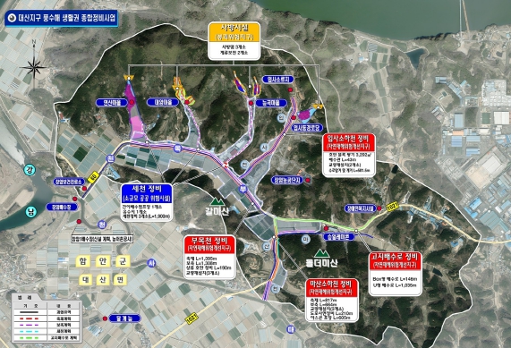 먼저, 이번에 선정된 3개 지구 중 풍수해 생활권 종합정비사업으로 선정된 대산지구는 총사업비 365억 원을 투입해 부목천, 입사천 등 하천 통수단면 부족에 따른 월류 피해 및 도로 침수, 마을 산지의 사면 토석류 피해 등 종합적인 재해에 대해 일괄 해소할 수 있게 됐다.