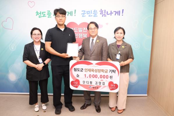 ▲ 청도군 단디팜 김창섭 대표 청도군 인재육성장학금 기탁 |