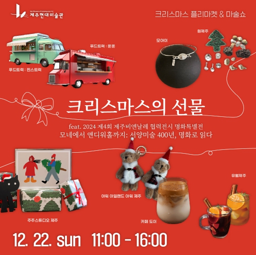 이번 행사에는 제4회 제주비엔날레 협력전시 명화특별전 '모네에서 앤디워홀까지'와 연계한 크리스마스 플리마켓·마술쇼를 선보인다.