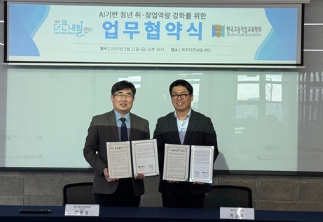 [뉴스서울] 제주더큰내일센터와 사단법인 한국고등직업교육학회는 2월 21일 AI기반 청년 취ㆍ창업 역량 강화를 위한 업무협약을 체결했다.