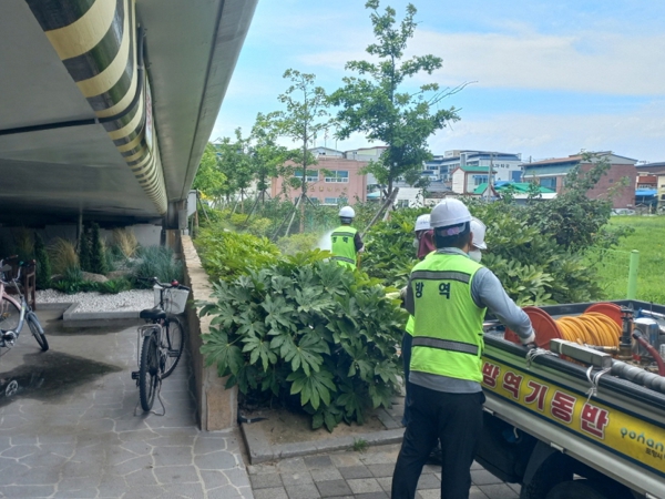 또한 야간 활동이 많은 걷는 길과 도시 숲에 포충기와 해충기피제 분사기를 설치하고 물이 고여있는 하수구는 모기 유충구제를 시행해 효율적이고 친환경적인 방역을 하고 있다.