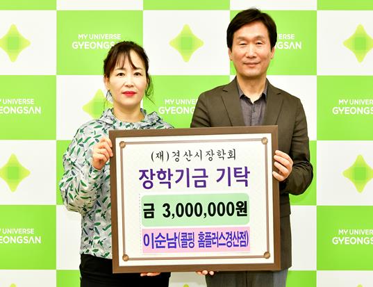 [뉴스서울] (재)경산시장학회는 7일 이순남 대표(콜핑 홈플러스 경산점)가 인재 육성을 위한 장학금 300만원을 기탁했다고 밝혔다.