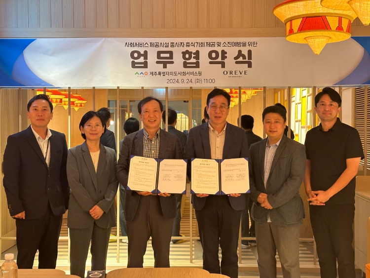 [뉴스서울] (재)제주특별자치도사회서비스원(원장 문원일)과 오래브 핫스프링 앤 스파(전무이사 이덕범)는 24일 도내 사회복지 및 돌봄 서비스를 제공하는 사회서비스 종사자들의 심리적 안정과 행복 증진을 위한 업무협약을 체결했다고 밝혔다.