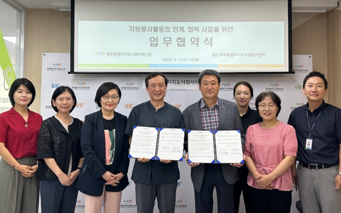 [뉴스서울] (재)제주특별자치도사회서비스원(원장 문원일)은 7일 제주특별자치도자원봉사센터(센터장 송영준)와 업무 협약을 체결했다.