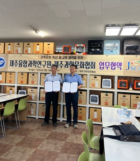협약식에는 김용관 제주융합과학연구원장, 고용철 제주과학문화협회이사장, 고영림 제주과학문화거점센터장 등 관계자가 참석하고 상호 협약서에 서명하고 교환하는 시간을 가졌다.