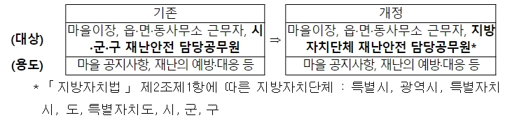 지방자치단체 재난안전 담당 공무원이 재난의 예방․대응 등에 관한 사항을 전달하는데 ‘마을 간이무선국’을 활용하고 있으나, 사용자 범위를 시․군․구 담당자로 한정하고 있어, 광역시․도에서도 활용할 수 있도록 다수의 지방자치단체가 과기정통부에 요청해 옴에 따라, 관련 규정인 『무선설비의 접속사용 범위』 고시 개정안을 마련했다.