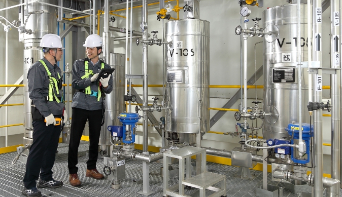 ▲ 한국폴리텍대학 석유화학공정기술교육원에서 파일럿 플랜트를 활용해 화학물질 누출로 발생할 수 있는 화재, 폭발 사고 예방을 위한 안전검사 교육을 하고 있다. |