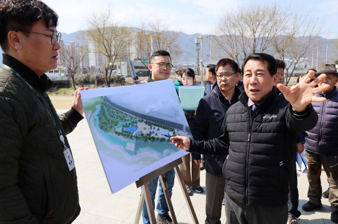 이날 현장행정에서는 지난해 말 조성된 오리소공원 주차장과 지난 20일 착공에 들어간 오리소공원 리모델링 사업 구간, 최근 미끄럼 사고 예방을 위해 회야강 산책로 데크 내 보행매트 설치 현장을 차례로 답사하고, 회야강 수변공원 사업 추진상황 및 계획을 점검했다.