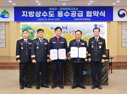 [뉴스서울] 청송군은 3월 20일 군청 제1회의실에서 윤경희 청송군수와 최진규 경북북부제1교도소장 외 3개소(직업훈련교도소, 제2교도소, 제3교도소) 소장이 참석한 가운데 '청송군-경북북부교도소간 지방상수도 용수공급 협약식'을 개최했다고 밝혔다.