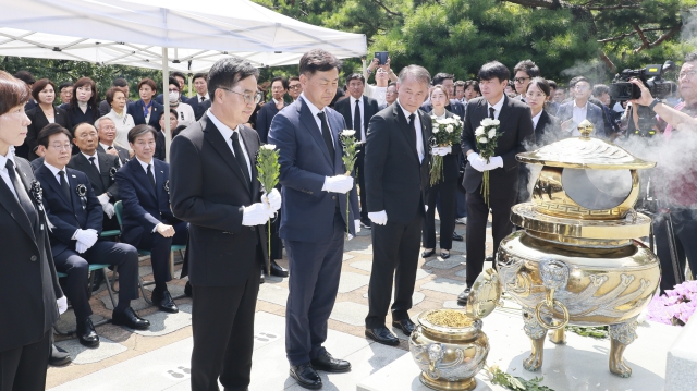 김 지사는 이날 오전 추도식장에 도착해 유족과 인사를 나눈 뒤 헌화와 분향을 하며 참배했다.