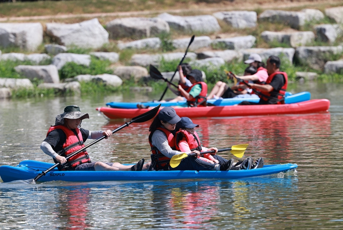 또, 수상체험으로 해병대 보트와 카약, 패들 보트를 즐기려는 관람객들의 줄이 계속됐다.