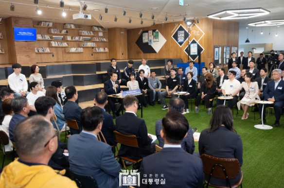 ▲ 5월 14일 윤석열 대통령은 서울 중구 서울고용복지플러스센터에서 ‘고맙습니다. 함께 보듬는 따뜻한 노동현장’을 주제로 스물다섯 번째 「국민과 함께하는 민생토론회」를 개최했다. |