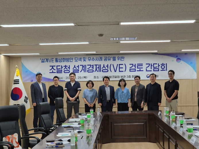 강성민 시설사업국장은 “공공과 민간이 함께하는 이번 간담회는 설계경제성(VE) 검토업무 수행에 있어 효율성을 높이는 계기가 될 것”이라며, “앞으로도 조달청의 설계경제성(VE) 검토를 활성화하여 공공 시설공사의 가치와 품질을 확보할 수 있도록 지속적으로 노력하겠다”고 말했다.
