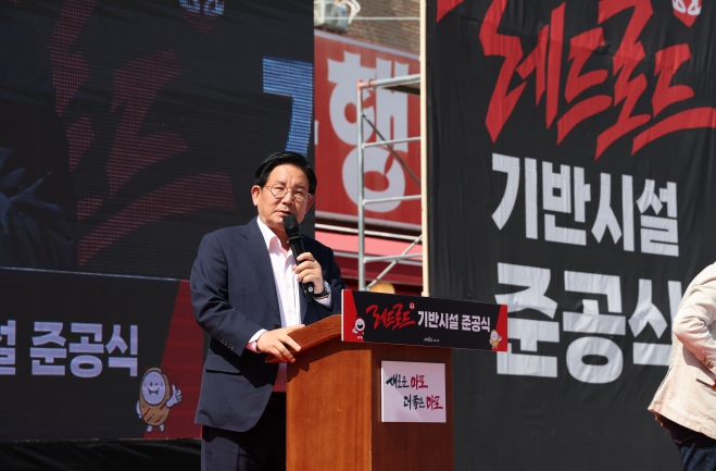 이날 준공식은 지역 구의원과 상인회, 주민 등 400여 명이 함께한 가운데, 56사단 군악대의 행진과 댄스공연, 레드로드 주제곡 독창 공연, 이재용 아나운서의 개회 선언으로 힘차게 막을 열었다.