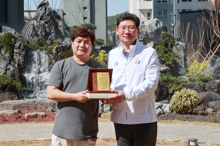 [뉴스서울] 이상일 용인특례시장이 지난 13일 처인구 중앙동 드마크 데시앙 아파트 내 입주 기념 식목 행사에 참여 후 입주예정자협의회로부터 감사패를 받았다.