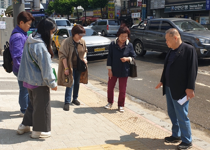 | ▲ 광명시는 시민생활밀착형 감찰 활동의 일환으로 9일 시민감사관과 함께 광명사거리역 주변 장애인편의시설 설치 적정 여부를 점검했다. |
