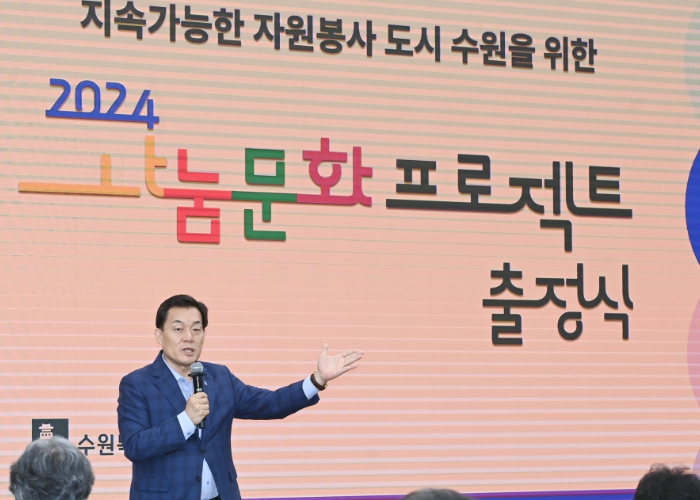 수원시자원봉사센터는 18일 수원시청 중회의실에서 ‘2024 자원봉사 나눔문화 프로젝트 출정식’을 열었다. 나눔문화 프로젝트는 수원새벽빛 장애인야학을 돕는 전략형 프로젝트와 다문화 가족 등을 지원하는 참여형 프로젝트 5개 등 6개 프로젝트로 이뤄져 있다.