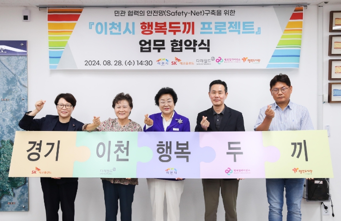 [뉴스서울] 이천시는 28일 시청 5층 다올실에서 SK에코플랜트, 다래월드, 행복얼라이언스 사무국(행복나래(주)), 행복도시락 사회적협동조합과 행복 두 끼 프로젝트 추진을 위한 업무협약을 체결했다.