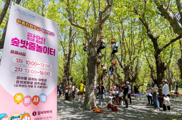 [뉴스서울] 부산 부산진구는 어린이날을 맞아 지난 4일, 5일 양일간 부산시민공원 기억의 숲에서 아동 및 아동보호자 1,000여 명이 참여한‘어린이날 기념 팝업 숲밧줄놀이터’행사를 개최했다.