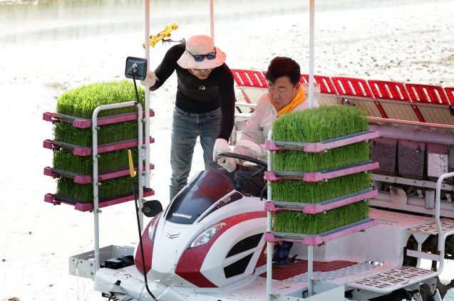 이 시장은 직접 이앙기에 탑승해 모내기를 시연했으며, 쌀을 생산하는 농업인들을 격려하고 영농활동의 어려움 등을 청취했다.