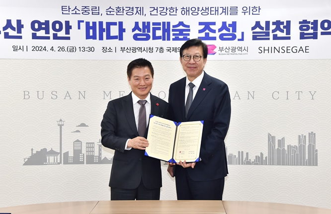 [뉴스서울] 부산시는 지난 26일 오후 1시 30분 시청 국제의전실에서 ㈜신세계와 '부산연안 바다 생태숲 조성 실천 협약'을 체결했다고 밝혔다.