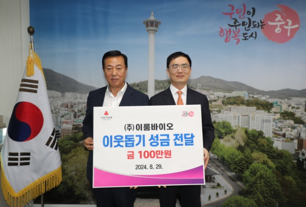 [뉴스서울] ㈜이룸바이오(대표 조진형)는 29일 부산 중구를 방문해 취약계층 지원을 위해 성금 100만원을 기탁했다.