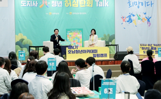 ‘도지사-청년 허심탄회 토크’는 올해 구성된 제4기 호남 청년 아카데미 프로그램 중 하나로, 청년의 고민과 건의 사항을 듣고 그들과 함께 새로운 길을 찾기 위해 진행됐다.