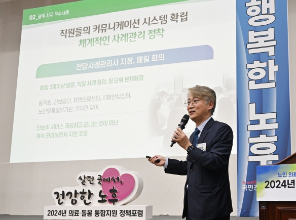 김이강 서구청장은 보건복지부와 국민건강보험공단 주최로 정부세종컨벤션센터에서 열린 ‘의료‧돌봄 통합지원 정책포럼’에서 지난 5년간 서구가 추진한 사람 중심의 스마트돌봄 정책의 성과를 발표했다.