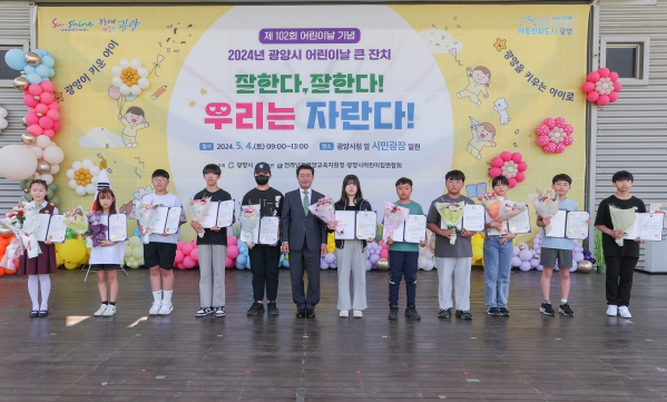 행사에서는 광양시청소년관현악단, 시립소년소녀합창단, 경선어린이집 난타 공연 및 YMCA 어린이집 사물놀이 공연 등 다양한 볼거리를 제공하고, 아동친화 환경조성에 기여한 모범어린이 표창 수여로 행사의 의미를 더했다.