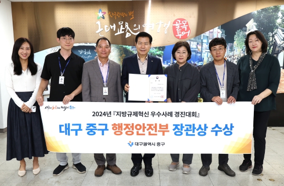 [뉴스서울] 대구 중구는 24일 대구 엑스코(EXCO)에서 열린 ‘2024년 지방규제혁신 우수사례 경진대회’에서 행정안전부 장관상(장려상)을 수상 했다고 밝혔다.