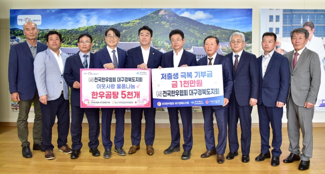 (사)전국한우협회 대구경북도지회에서도 8일 경북도청에서 저출생 극복 성금 1천만원과 취약계층 지원을 위한 2천만원 상당의 한우곰탕 5천개를 경북사회복지공동모금회를 통해 전달했다.